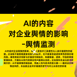 AI舆情监测:企业品牌抵御内容错误与虚假抹黑的智能防线构建 引言:数字时代的舆情战争新形态 在生成式AI技术普及的2025年,企业面临的舆情环境发生根本性转变。某跨国快消品牌因AI生成的”产品致敏”谣言在TikTok平台48小时内传播超... 2025年10月27日 网络舆情